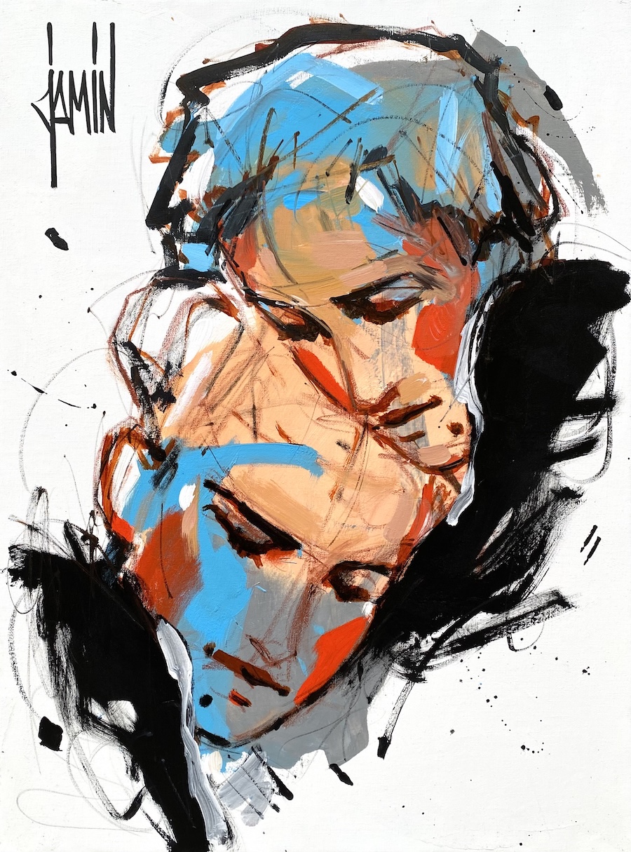 Né en 1970, David JAMIN s’épanoui dès son plus jeune âge dans le dessin et l’esquisse. Avec le temps son style s ‘affirme, et son traitement de la face sensible de l’être humain, par le biais de ses « Introportraits », le révèle définitivement au public. Il joue ainsi de nos émotions, et s’offre la liberté d’explorer tous les sujets. Dans une oeuvre profondément gestuelle et déterminée, il nous révèle avec tendresse, toute la complexité de l’être humain. Présent en galeries sur 3 continents, la Galerie BOISIVON est fière de représenter son oeuvre, pour toute la Normandie.